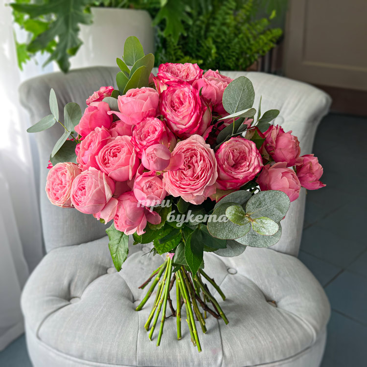 Букет 9 розовых пионовидных роз Сильва