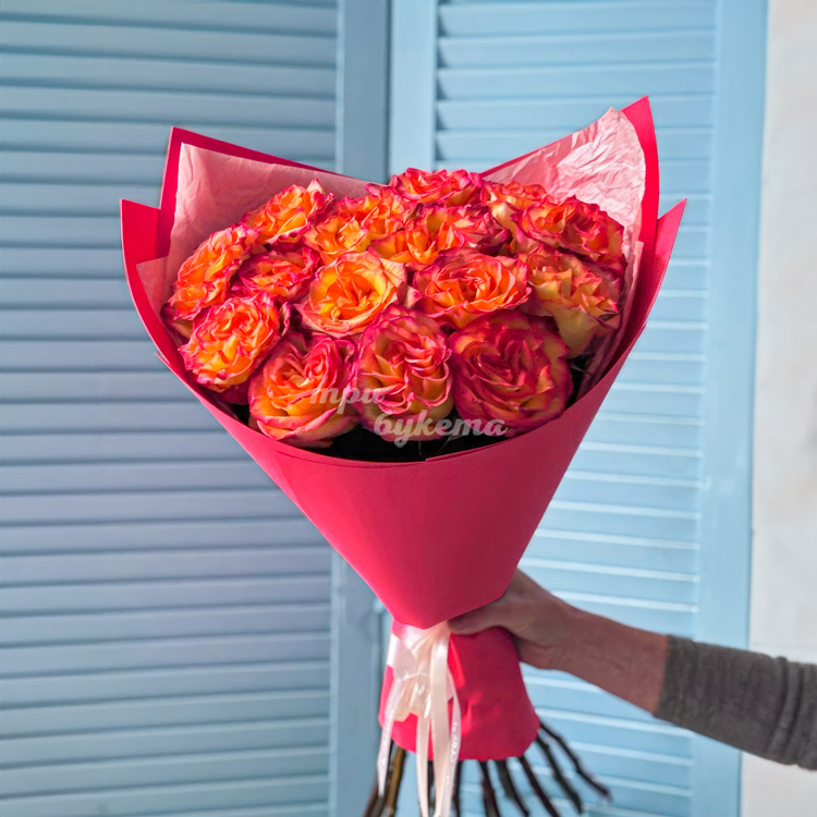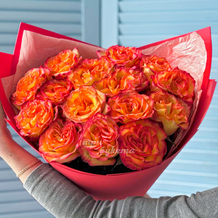 - Оранжевые эквадорские розы, 15 шт.