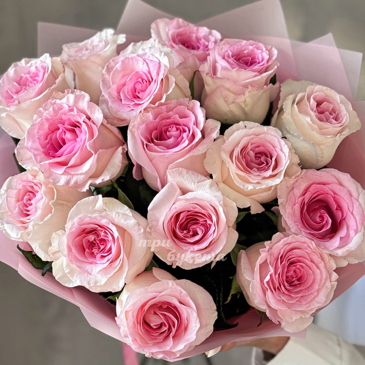 - Розовые пионовидные розы, 15 шт.