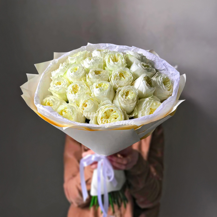 Букет из 25 белых пионовидных роз