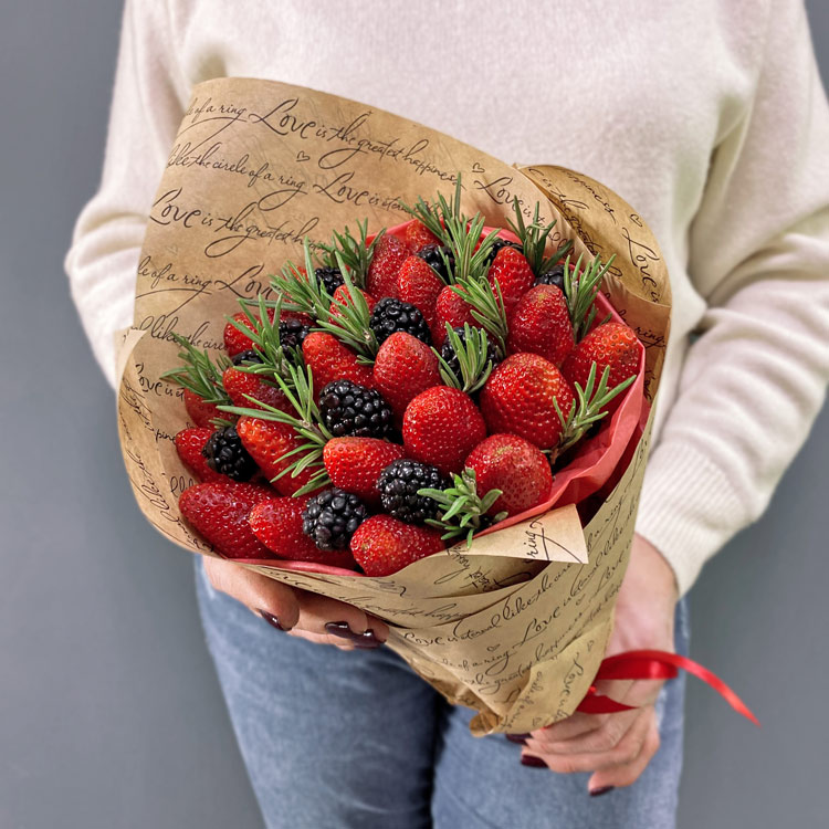 Букет из 25 ягод клубники и ежевики