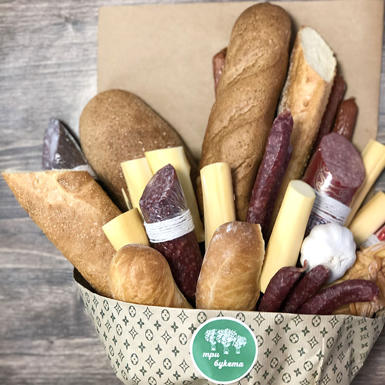 Букет из колбасы, батонов и сыра