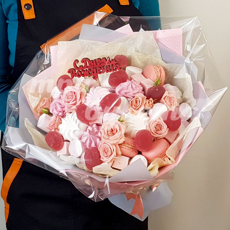 Букет из зефира и макарун