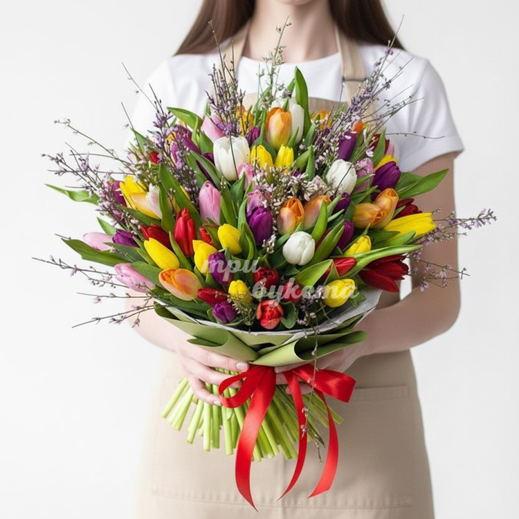 Букет на 8 марта из 67 тюльпанов