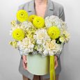 Букет желтых роз с эустомами и сиренью