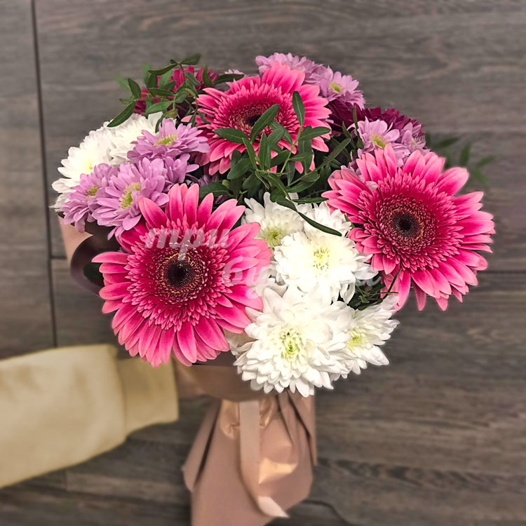 Герберы и разноцветные хризантемы