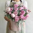 Ирисы и эустомы в ящичке