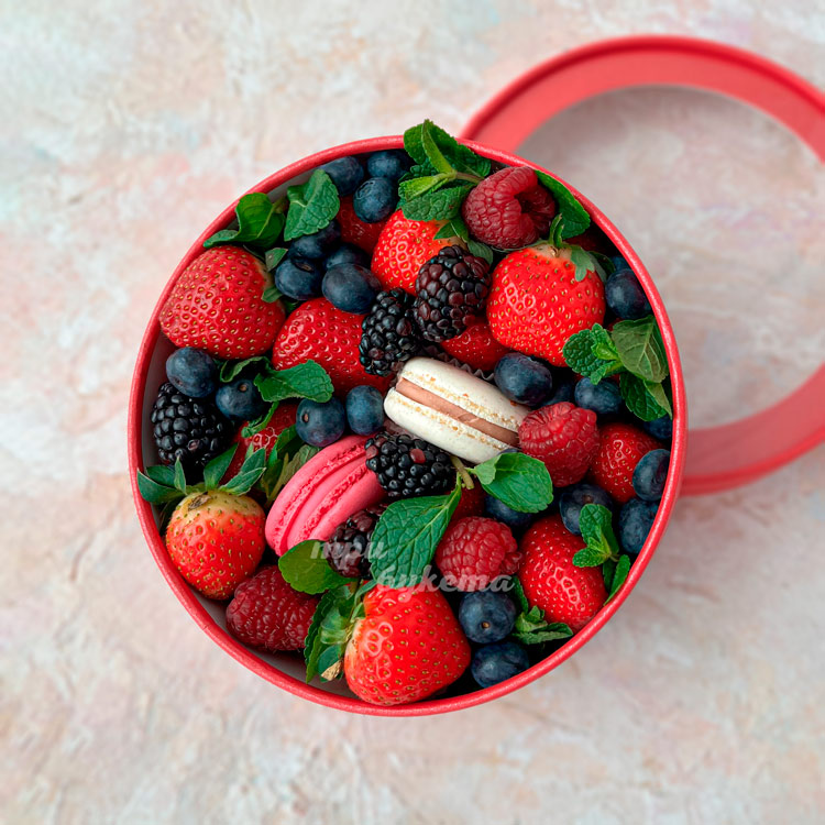 Коробочка клубники, ягод и макарун