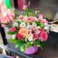 Коробочка с розовой гипсофилой и статицей