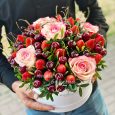 Корзина розовых куст. роз с гипсофилой