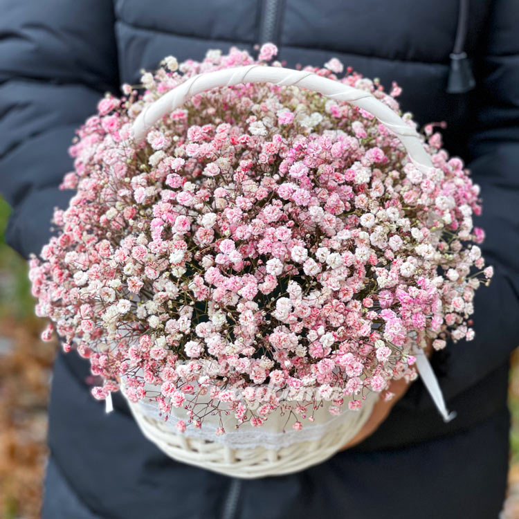 Корзина с 9 розовыми гипсофилами