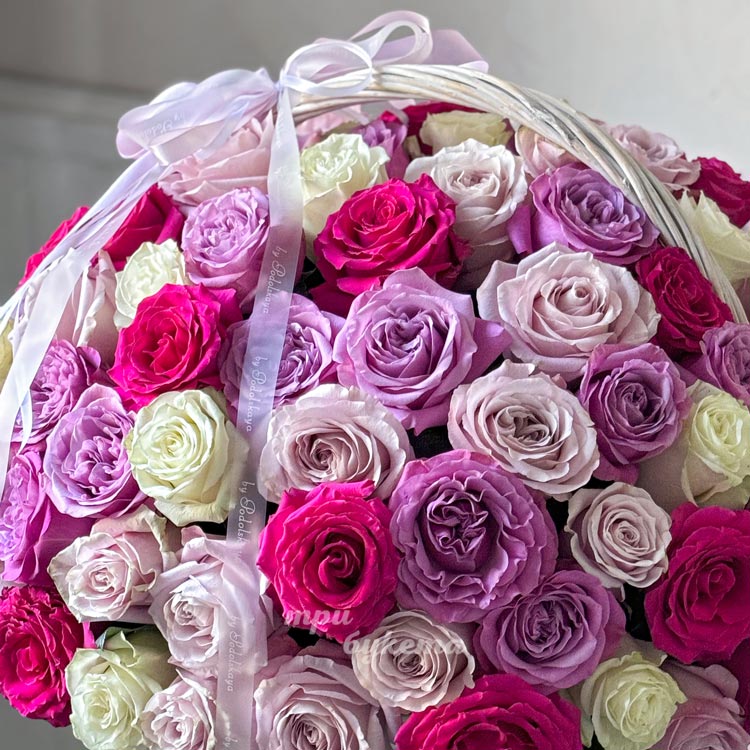 Микс из 101 розы Эквадор в корзине