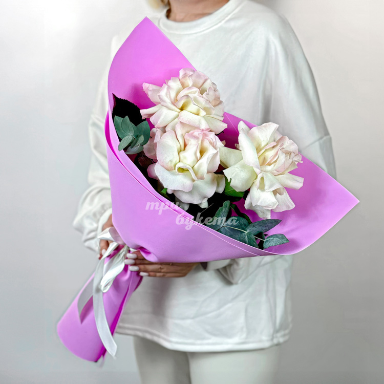 - Нежно-розовые розы, 3 шт.