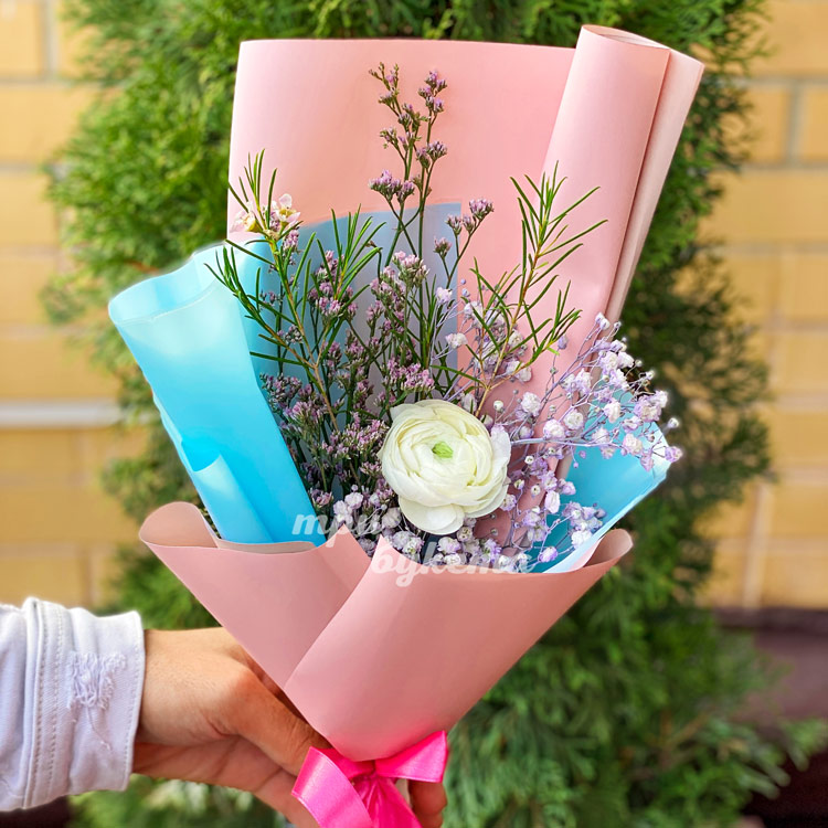 Мини-букет из белого ранункулюса