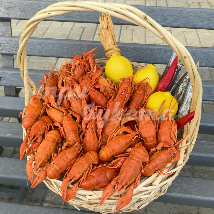 Раки и лимоны в корзине