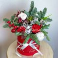 Шляпная коробка белых роз и гортензий