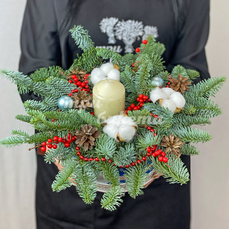 Шляпная коробка хвойных веток