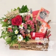 Ящик белых эустом и красных роз